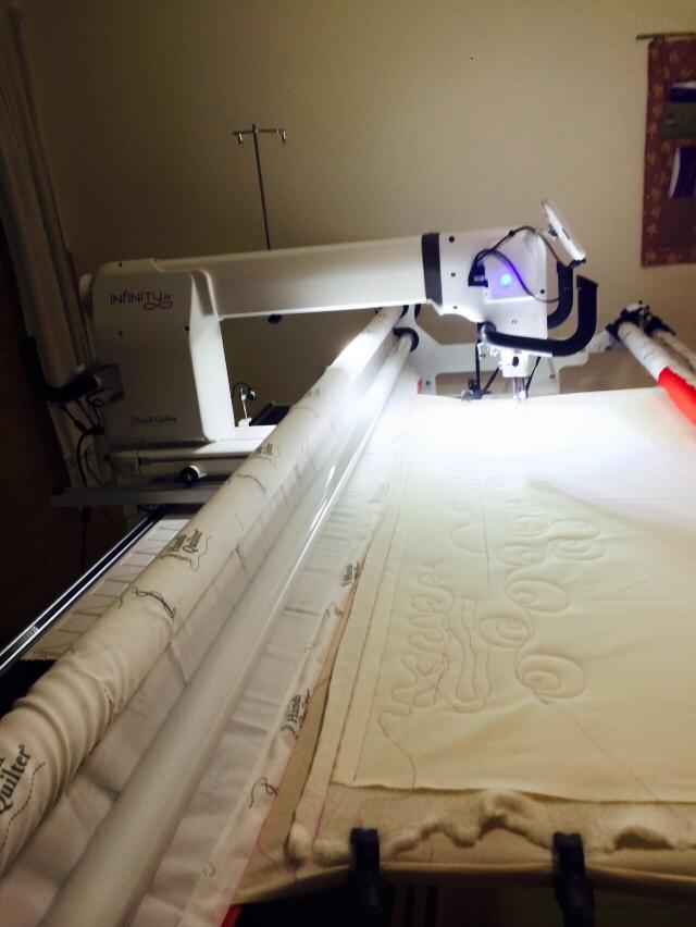 Disculpad que las fotos no sean muy buenas… aún tengo que poner la iluminación adecuada en el taller, pero así os hacéis una idea de como es mi nueva Handi Quilter Infinity, pronto os la enseño como es debido…